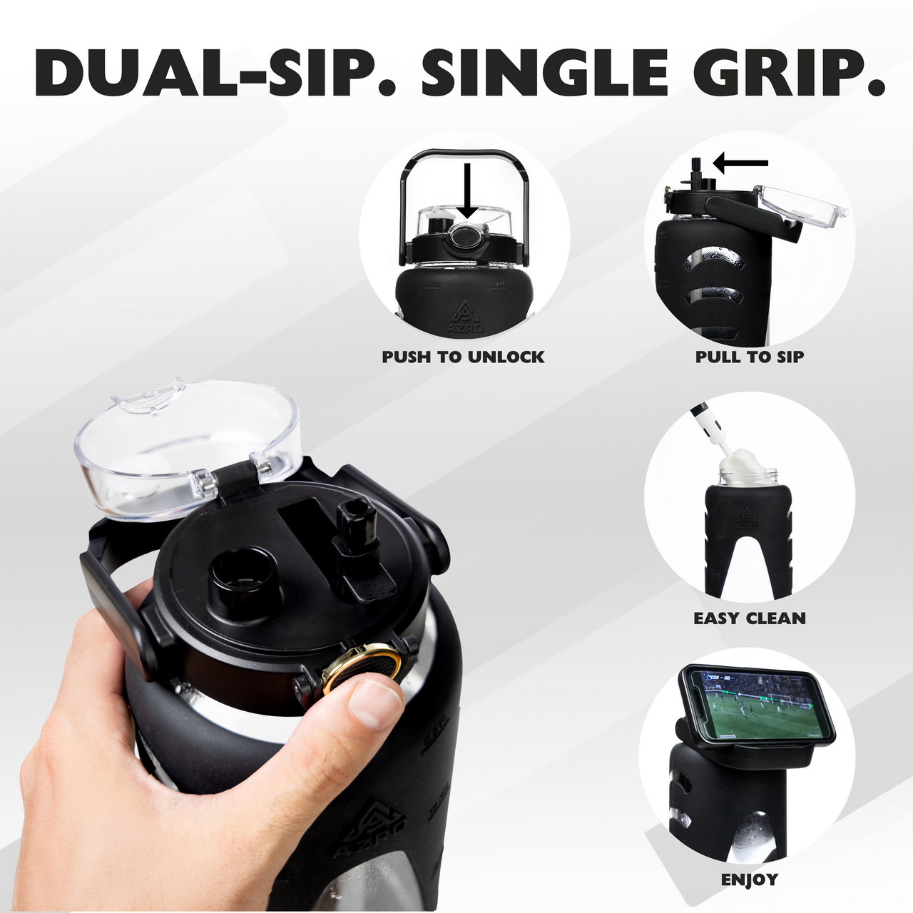 Azro is a premium-edition 64 oz water bottle, available exclusively through our store.It’s designed with an ergonomic grip for effortless handling.