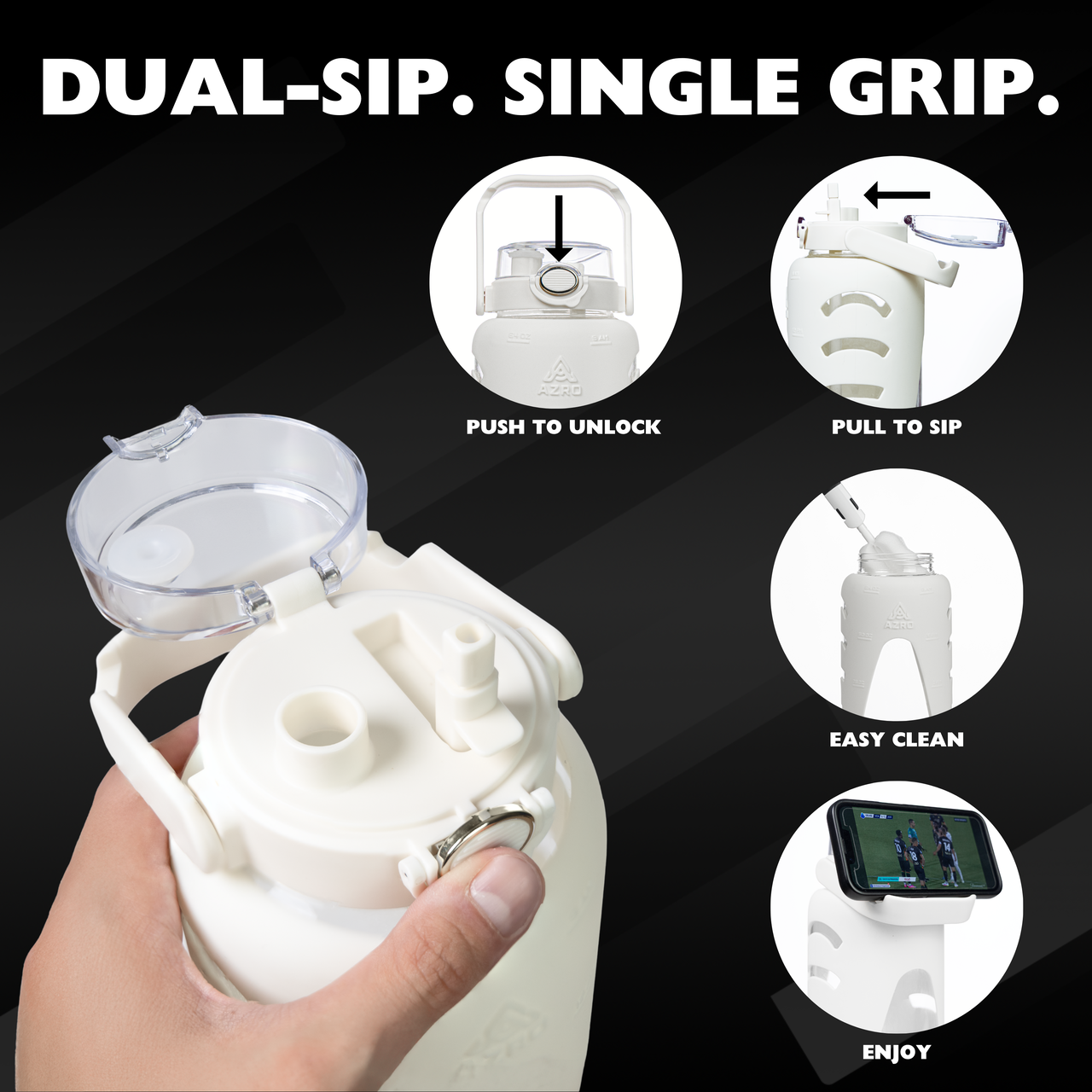 Azro is a premium-edition 64 oz water bottle, available exclusively through our store.It’s designed with an ergonomic grip for effortless handling.